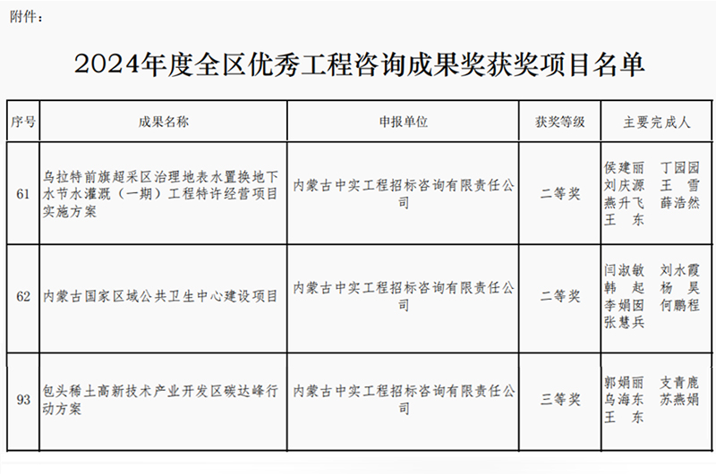 2025-04-1610041 次2025年4月16日,内蒙古工程咨询协会公布了2024年度优秀咨询成果奖获奖单位名单,我司取得两个二等奖和一个三等奖,我司专业能力和服务质量再次获得行业的认可。此次获奖,不仅体…